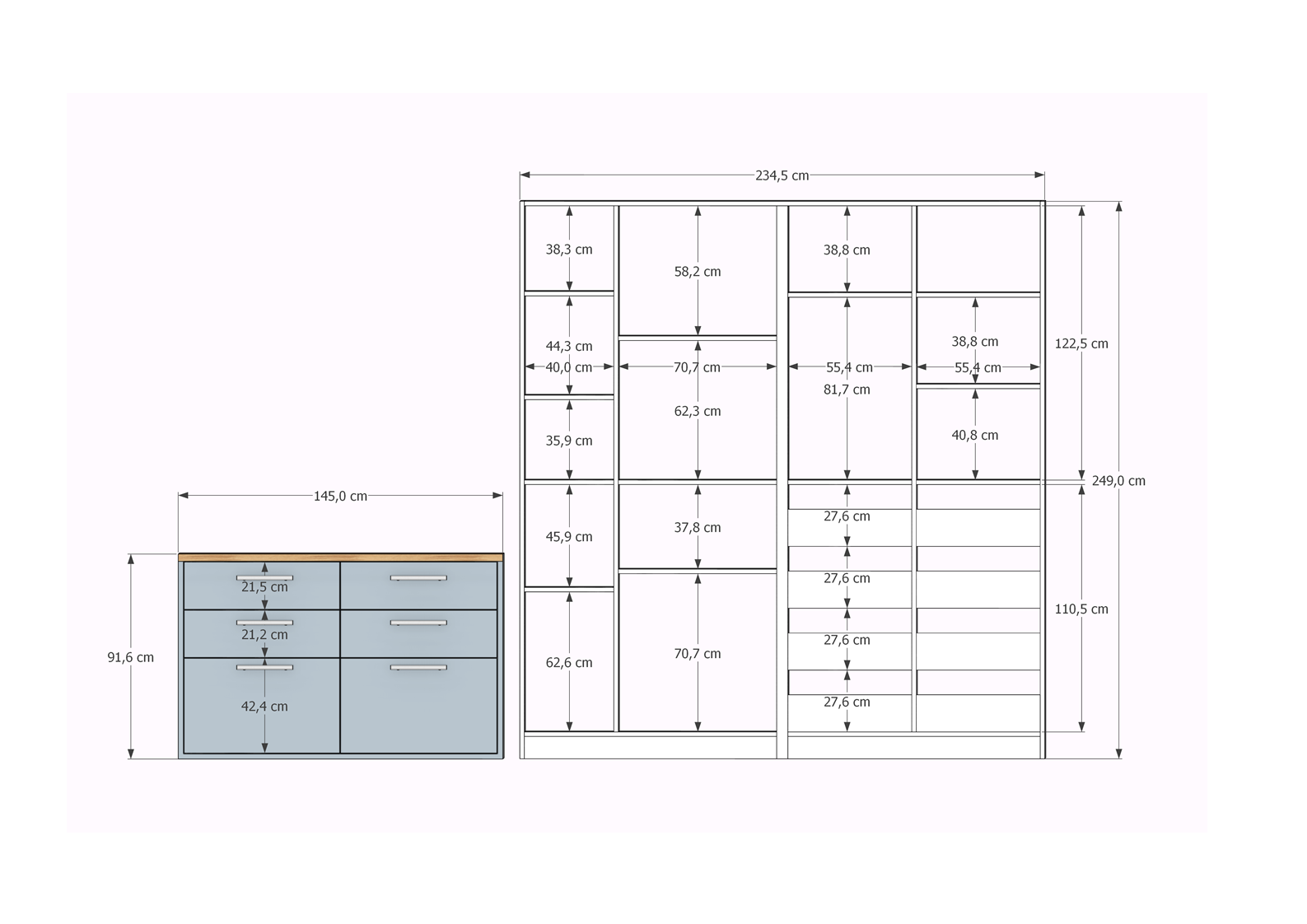 visuels intérieurs et élévation cotées des éléments sur mesure